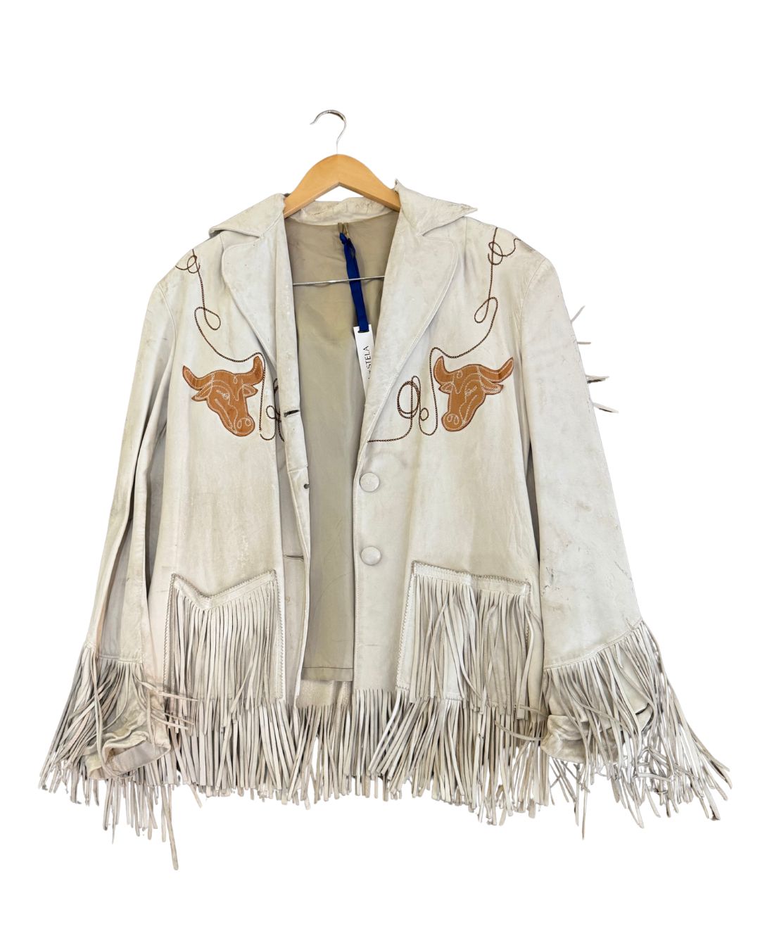 Vintage White Suede Fringe Jacket – Longhorn Rodeo Western Showpiece (1970s) - S/M