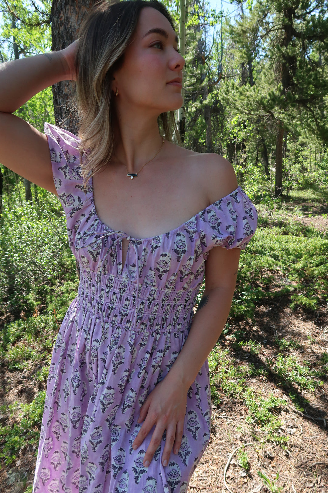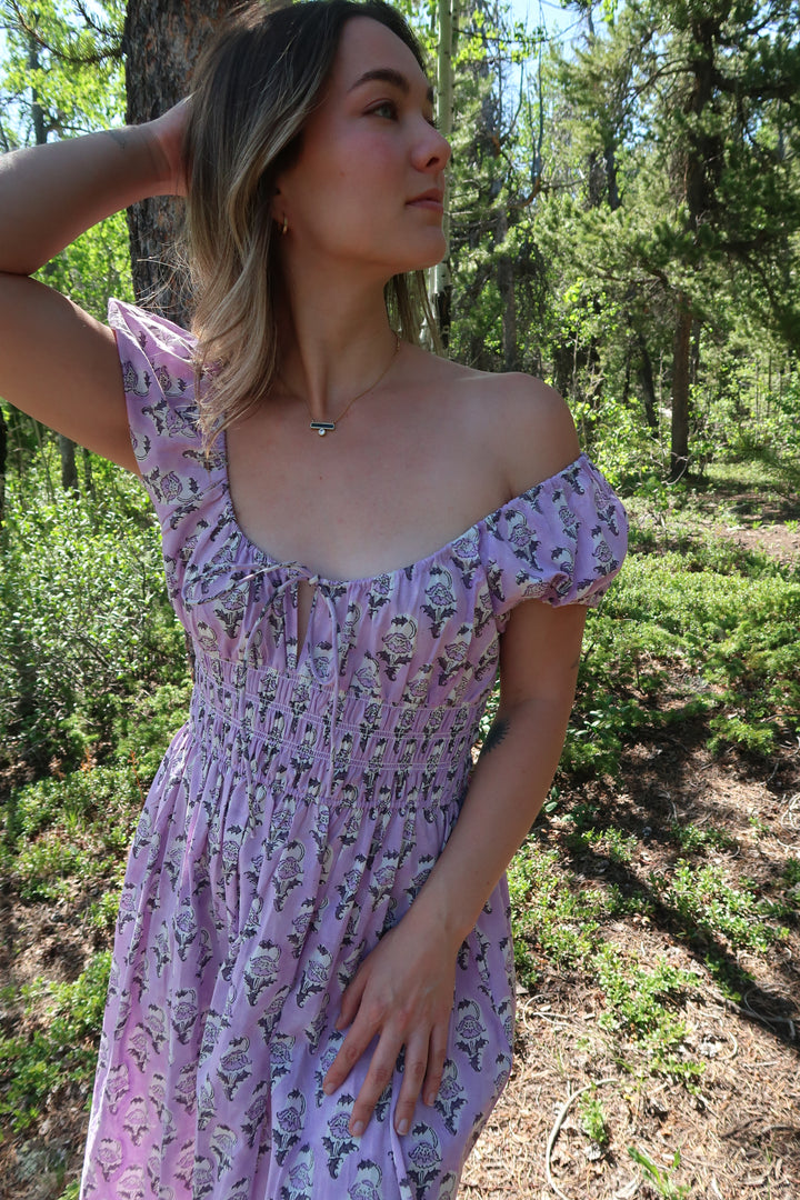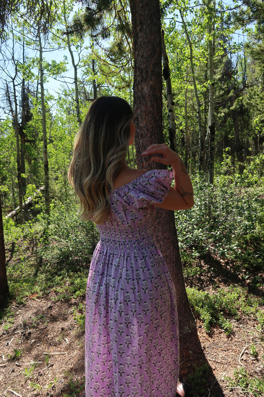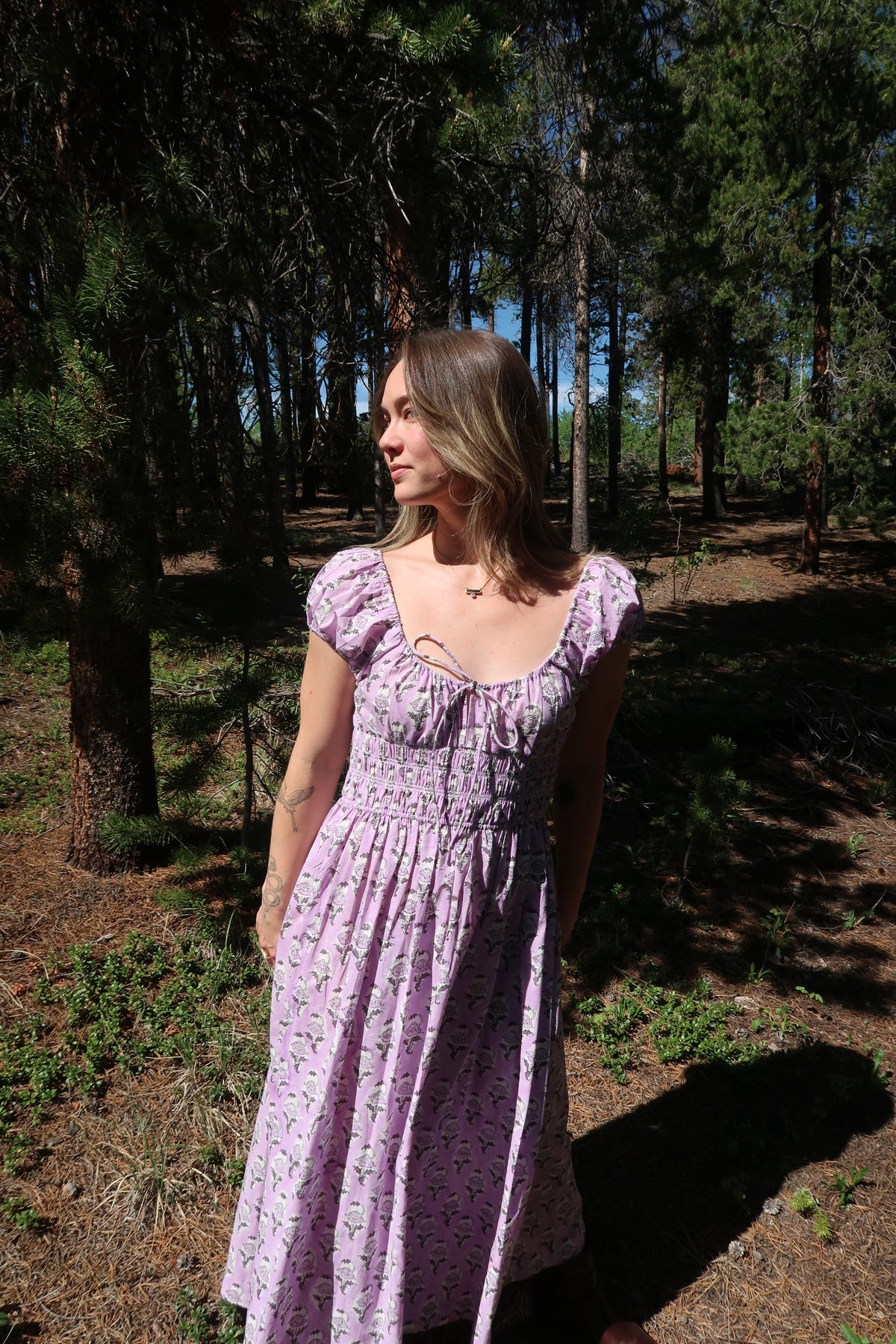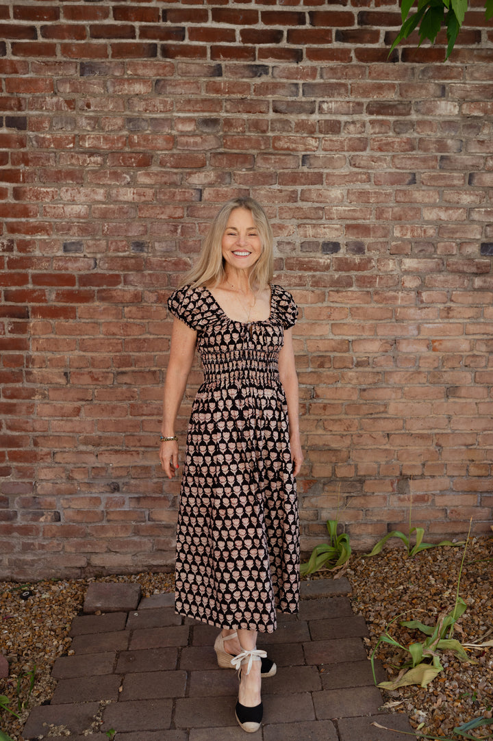 Romantic, soft-spoken, and quietly confident. Eva is the dress that brings ease and beauty to your everyday. With a smocked bodice, puff sleeves, and a delicately gathered neckline, she flatters effortlessly while keeping things breezy. Her midi-length skirt flows with charm, making her perfect for long walks, weekend markets, and slow breakfasts on sunny porches.