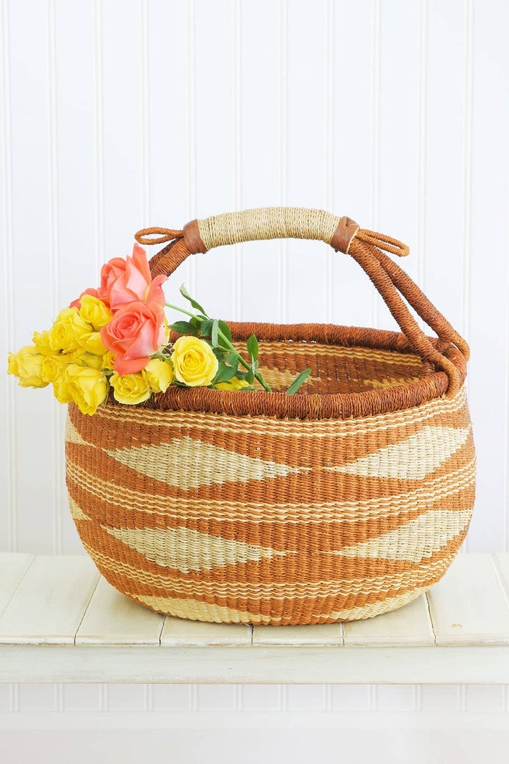 Caramel Diamond Handwoven Decorative Bolga Basket